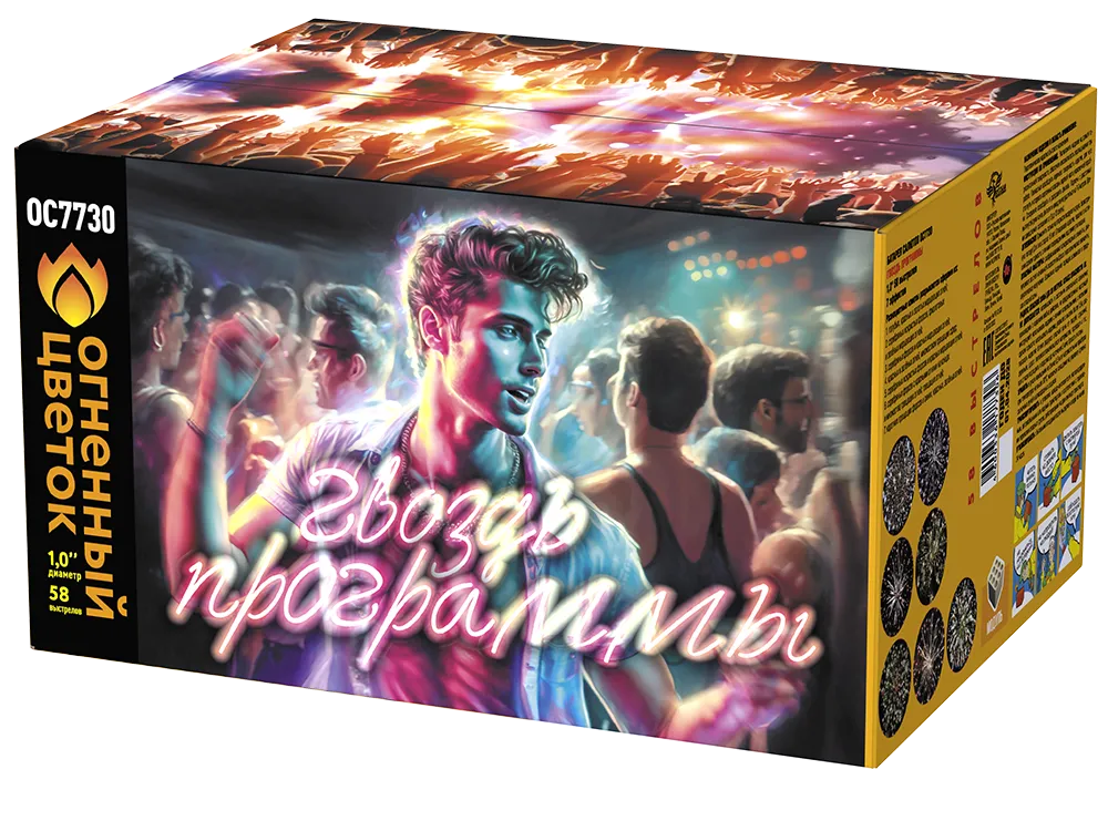 7.коротких трещащих форсов и синих, красных, зелёных огней.